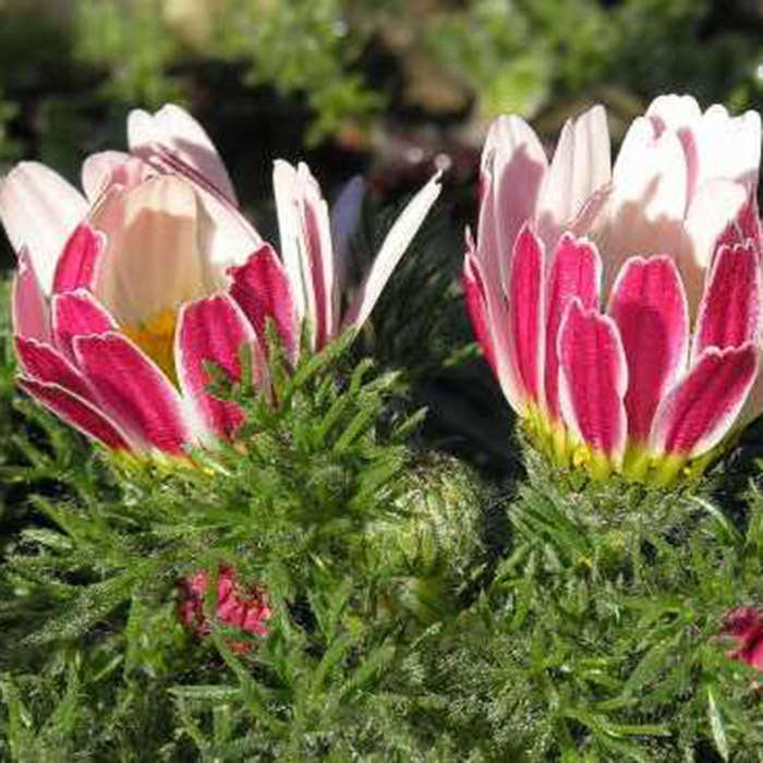 • Цветы сравнительно некрупные, расположены на коротких цветоносах. Закрытый бутон имеет розоватую окраску, открытый же цветок белый, а формой несколько напоминает ромашку.