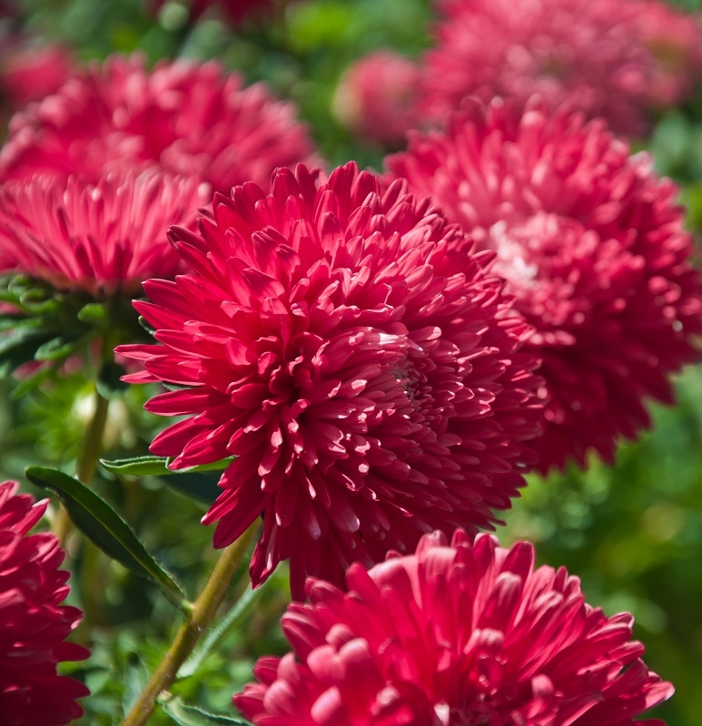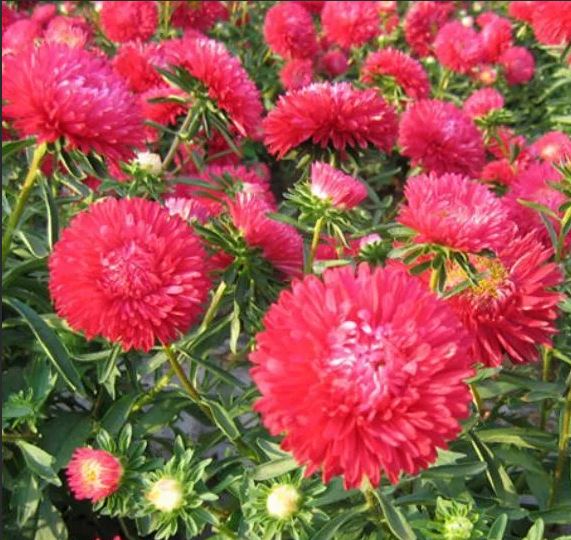Семена астры «Красный ковер» превращается в компактное растение. Высота взрослого кустика не превышает 20 см. Семена астры «Красный ковер высеваются во второй половине февраля. Необходимо сделать парник с температурой до 20 градусов. Тогда первые всходы появятся через одну-две недели. Рассаду астры «Красный ковер» высаживают в открытый грунт начиная с середины мая. Место выбирают солнечное с дренированной почвой. Первые бутоны раскрываются с июле. До конца осени или до первых заморозков куст усеян пушистыми цветами алого цвета. Диаметр соцветий достигает 10 см.