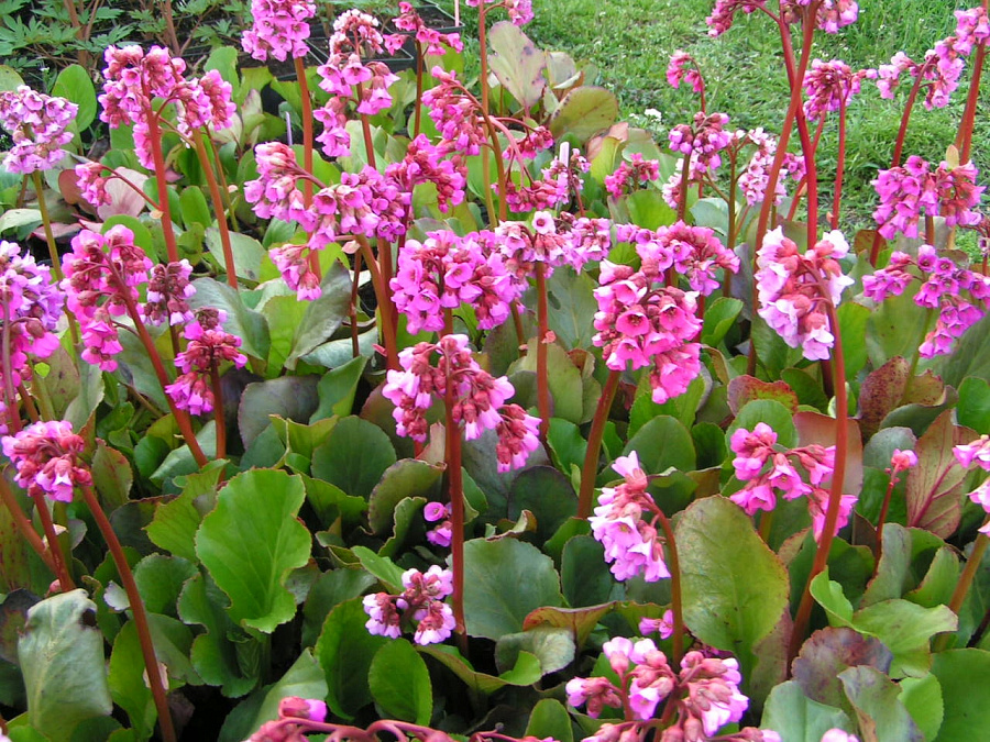 Бадан Сердцелистный (BERGENIA cordifolia) – неприхотливое растение с мощной зеленой листвой и красивыми нежно-розовыми цветами. Отлично переносит влагу и затенение, хорошо себя чувствует в низинах, растет в тени деревьев и кустарников. BERGENIA cordifolia хорошо смотрится в групповых посадках, в альпинариях, на рабатках. Цветение начинается в мае и продолжается до конца июня. Соцветия высокие, до 40 сантиметров, пышные. Мощная ярко-зеленая листва обеспечит декоративность растения на протяжении всего лета, в осенний период она приобретает красно-коричневый окрас.