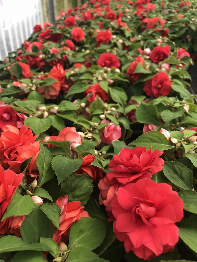 Рассада Бальзамина (Импатиенс) Уоллера Фиеста Бонита Черри (Fiesta Bonita Cherry) порадует ярким и продолжительным цветением. Начиная с июня и до ноября, на кустике непрерывно образуются небольшие махровые цветы ярко-красного цвета. Бутоны расположены на стеблях часто, превращая однолетник в полноценный букет. Высота растения всего 35 сантиметров, побеги многочисленные, листва крупная, темно-зеленая.