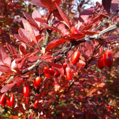 Саженцы Барбариса Тунберга Atropurpurea (Атропурпуреа) – медленнорастущий кустарник с красно-коричневыми листьями. Достигает высоты около двух метров, диаметр, как правило, превышает высоту. Листья саженцев могут быть округлыми или лопатчатыми, длина до трех сантиметров.