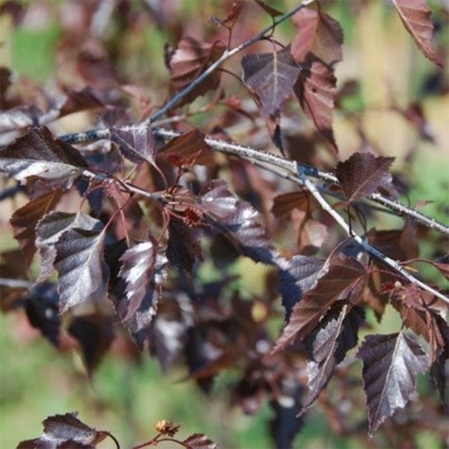 Саженцы березы повислой Роял Фрост (Royal Frost) можно высаживать на почвах разного состава. Крупномер этого дерева выглядит очень эффектно и декоративно за счет белоснежной коры и бордово-пурпурных листьев с глянцем. У молодых саженцев кора бронзовая. Листья ромбической формы с заостренными концами. Особенности выращивания: