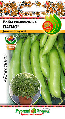 Семена бобов "Компактные Патио" подходят для выращивания в кадках и кашпо. Кустики в высоту достигают максимум 40 см. Они быстро наращивают стебли и формируют завязь, которая созревает за 7 недель от момента посадки. Бобы прекрасно держатся в кучке, не давая провиснуть стеблям под тяжестью урожая. Крупные зеленые семена бобов "Компактные Патио" сразу по 8 штук в стручке отличаются приятным вкусом. Их собирают молочной спелости. Пригодны для употребления в свежем виде, для приготовления блюд и в консервации.