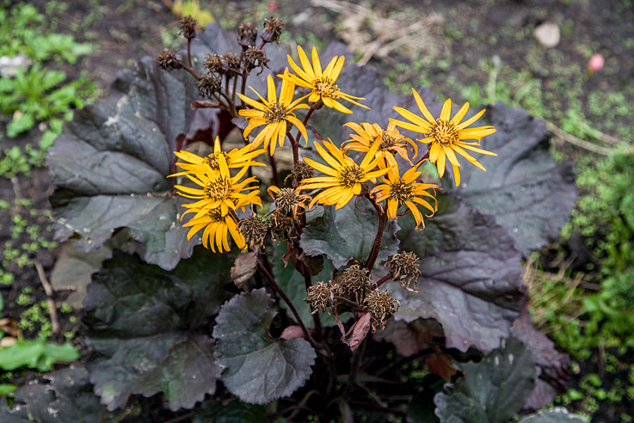 Рассада бузульника "Осирис Фэнтези" (Osiris Fantaisie) относится к сорту с необычным окрасом листьев: темно-зеленый с коричнево-бордово-фиолетовым оттенком. Край листа волнистый зубчатый. Цветки золотисто-желтые в виде крупной ромашки, на красных цветоносах. Цветение продолжительное и длится с июля до морозов. Растет рассада бузульника "Осирис Фэнтези" быстро. Растение неприхотливо, но в густой тени теряет свой декоративный вид. Также оно любит влажные места. В высоту многолетник достигает до 70 см.