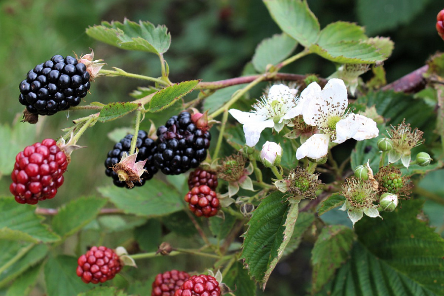 Рассада Ежевики садовой Рубен (Reuben) вырастает в кустарник высотой от 1,5 до 2 метров. Побеги направлены вверх, поэтому растение не выглядит громоздко. Подвязки не требует. Ягода черная, блестящая, массой 10 грамм, округлой формы. Вкус сладкий с фруктовыми нотками, мякоть сочная. Урожайность составляет 5 кг с растения. В плодоношение ежевика вступает дважды: в середине лета и осенью (на молодой поросли). Для благополучной зимовки в регионах с низкими температурами побеги пригибают к земле и укрывают снегом.