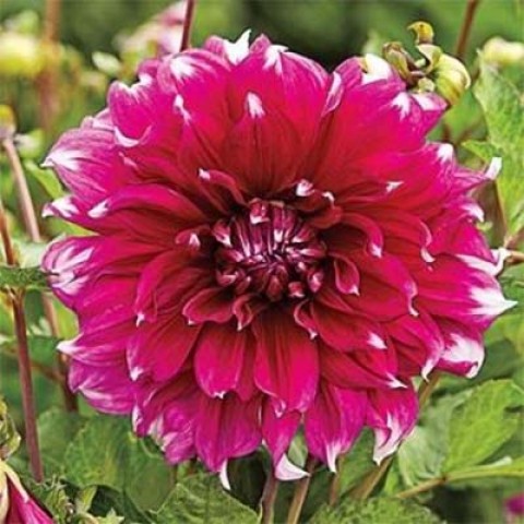 Луковицы Георгины декоративной Ярра Фоллс (Yarra Folls) — яркое и необычное решение для сада и теплиц. Это однолетний сорт, который отлично приживается при любом режиме освещенности. Растения предпочитают рыхлые и плодородные почвы и могут достигать до 90 сантиметров в высоту. Они отлично смотрятся в отдельных насаждениях и в комплексных массивах, а также в сборных букетах. Георгина Ярра Фоллс цветет с июля и до заморозков, когда остальные растения уже теряют декоративный вид. У этого сорта одиночные крупные соцветия, которые могут достигать 20—22 сантиметра в диаметре. Отдельные лепестки собраны в объемный цветок шаровидной формы и окрашены в яркий лиловый оттенок. Особое изящество достигается благодаря контрастным белым кончикам лепестков.