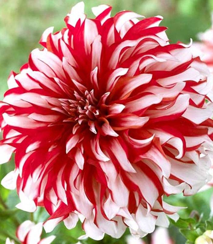 Клубни георгины махровой Доллу Х (Dáhlia variabilis Dolly H) позволят вырастить на участке куст с резными листьями. С июля по сентябрь его будут украшать махровые цветы оригинальной расцветки. Края лепестка окрашены оранжевым цветом, центр и кончик – белые. Лепестки широкие, плоские. Куст вырастает в высоту от 60 до 100 сантиметров. Для выращивания выбирают солнечный участок, на котором летом не застаивается влага. Чтобы стебли не падали на землю под тяжестью цветков, куст подвязывают к опоре. Ее устанавливают во время высаживания. Глубина погружения клубня в почву 10 сантиметров.