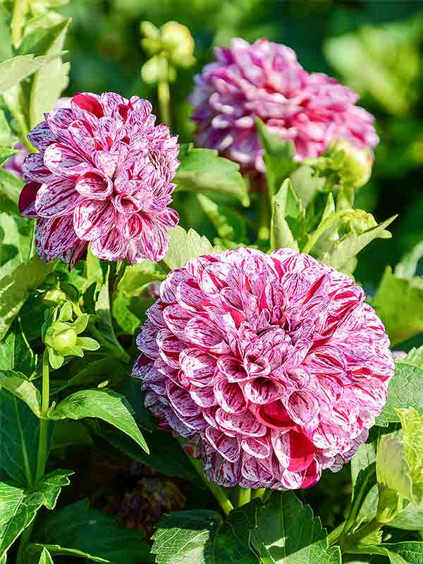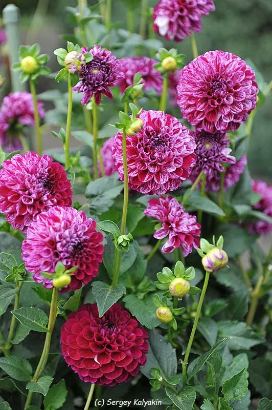 Георгина шаровидная марбл болл - это великолепное растение с бордовыми цветками, украшенными белым меланжем. Ее стебель прочный и прямой, достигает высоты до 90 см. Листья георгины имеют интересную форму и яркий зеленый оттенок, что делает растение еще более привлекательным.