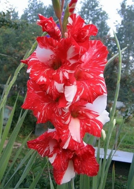 Луковицы гладиолуса гибридного Helvetia рекомендуют высаживать в открытую почву, когда та прогреется до температуры минимум +10 градусов. Растение неприхотливы, но для обильного цветения нужно придерживаться некоторого ухода: выполнять обильный полив, но без застоя воды, вносить микроудобрение, рыхлить грунт. Высота растения колеблется от 100 до 150 сантиметров. Цветет гладиолус гибридный Helvetia все лето. Крупные цветы собираются в длинные соцветия. Лепестки гофрированные, имеют пеструю бело-красную расцветку.