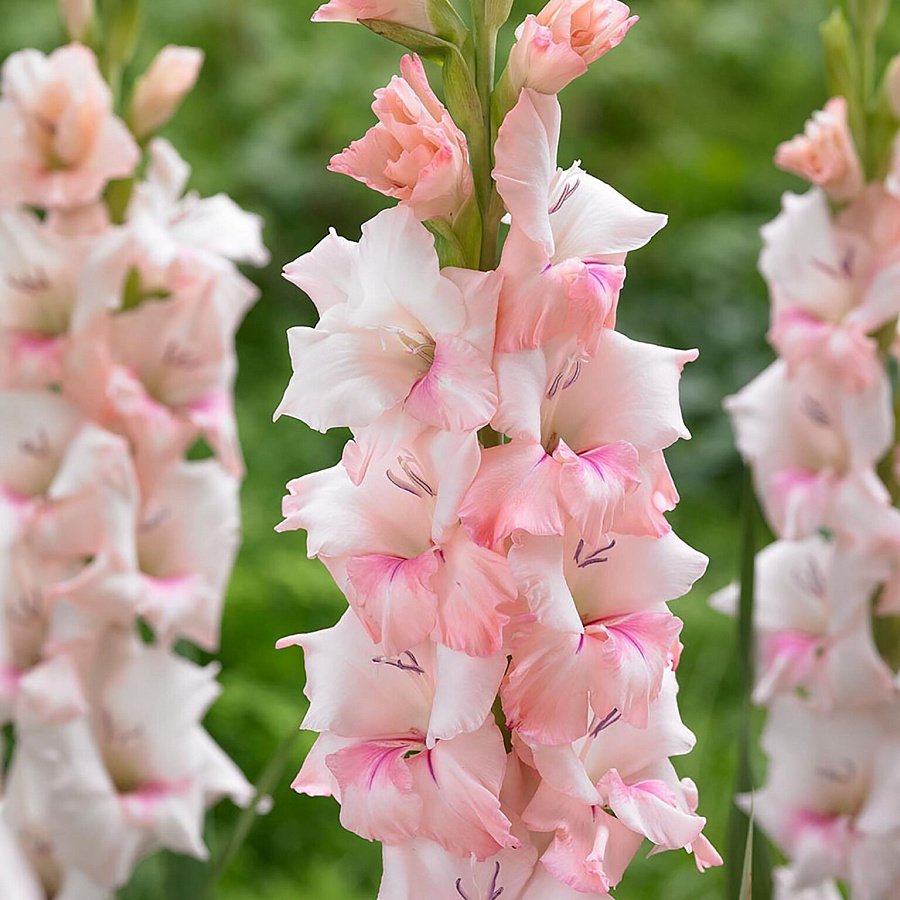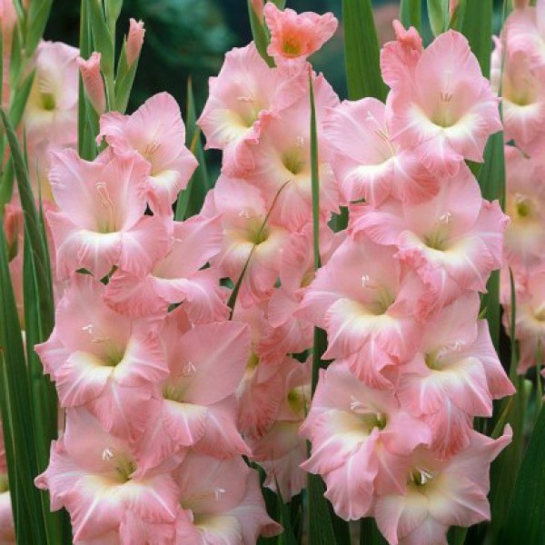 Нежно розовые цветки этого растения завораживают своей красотой - гладиолус гибридный Роуз Сьюприм (Rose Supreme) с цветоносом до одного метра можно посадить в миксбордере или отдельно расположенной грядке. Выращивается предпочтительно для срезки. Предпочитает хорошо освещенные солнечные сухие места, во время цветения обязателен обильный полив. В соцветиях длиной до 80 сантиметров распускается около 25 цветков. Именно для букетов выращивается это прекрасное растение. Размеры каждого цветка могут достигнуть 15 сантиметров в диаметре. В открытом грунте нужно предохранять растение от сквозняков и сильного ветра.