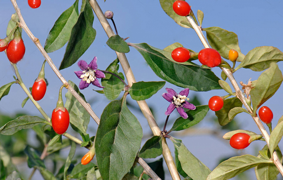 Годжи обыкновенную Сахарный Гигант ценят за обильный урожай, который появляется в июле, но массово созревает в конце августа. Небольшие сладкие ягоды обладают уникальными омолаживающими свойствами. Чтобы плоды не горчили, необходимо обеспечить растению регулярный обильный полив.