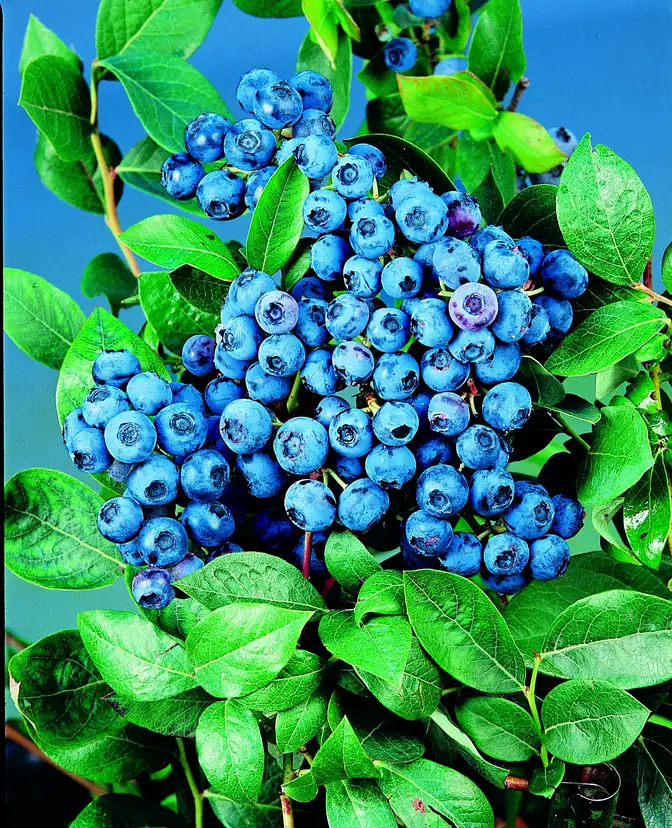 Саженцы голубики садовой Bluecrop (Блюкроп) – крупномер-эталон: самый ценный сорт. Кустарник высокорослый, достигает двух метров. Этому виду голубики нипочём мороз в -34 градуса. С одного куста можно собрать порядка 8 килограммов плодов. Ценность их велика: