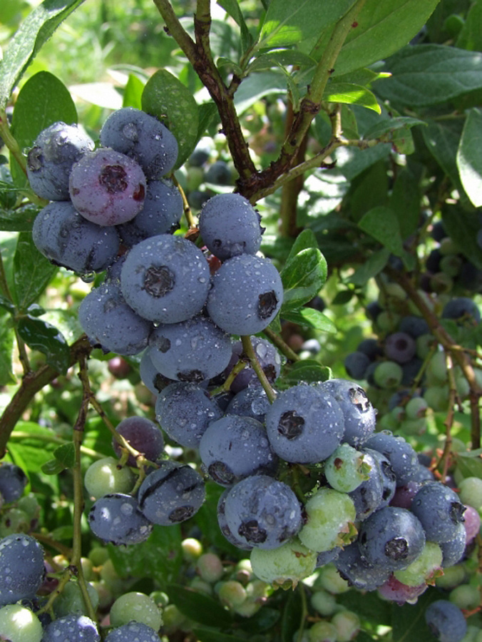 - возможно высаживание в контейнерах. Отличительные черты этой голубики – черный цвет и яркий вкус, напоминающий чернику. Растение предпочитает хорошо дренированную кислую почву.