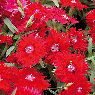 Гвоздика сорта Supra Crimson - это настоящий огненный драгоценный камень вашего сада! Ее красные цветы привлекут внимание и подарят яркие краски вашему участку. Высота этого растения может достигать 25-30 см, что делает его идеальным для групповых посадок. Листья гвоздики Supra Crimson имеют изящную форму и придают ей особый шарм.