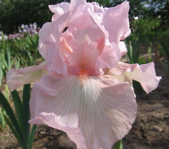 Саженцы ириса бородатого Пинк Таффета (Pink Taffeta), соответственно своему названию, по цвету напоминают нежно-розовую ириску-тянучку. Если корневище цветка, высаженное в низине, будет получать достаточное количество влаги, то соцветие распустится быстро, украсив клумбу чарующим нежно-розовым светом. Растение не требовательно к удобрениям и поливу, внесение большой порции воды под корень ему необходимо лишь во время засухи.  Пинк Таффета станет подходящим украшением для клумбы, бордюров, рокариев или рабаток. Живописно растение смотрится на прибрежных зонах и каменистых горах.