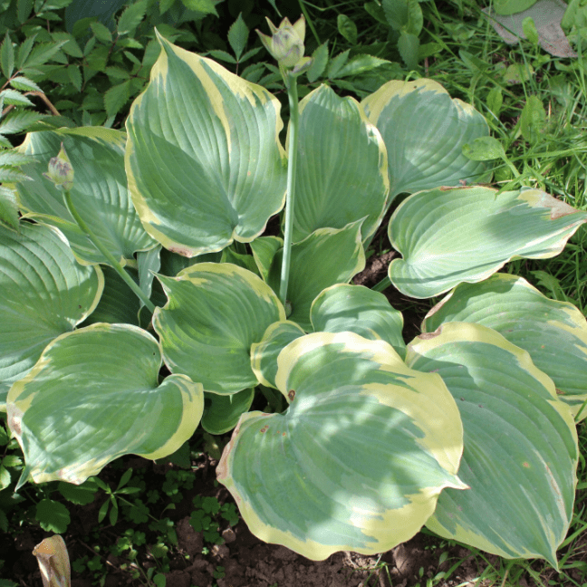 Рассада хосты Эс энджел (Earth Angel) часто используется для украшения несколько притененных клумб, газонов и альпинариев. Сорт Эс энджел является одним из самых крупных, с характерными большими голубовато-зелеными листьями клиновидной или широко овальной формы. По краю листа идет желтая кайма, которая с возрастом растения становится кремового цвета. Цветы образует также крупные, светло-сиреневого цвета воронковидной или воронковидно-колокольчатой формы. Растение отличается теневыносливостью и устойчивостью заморозкам, что значительно упрощает уход.