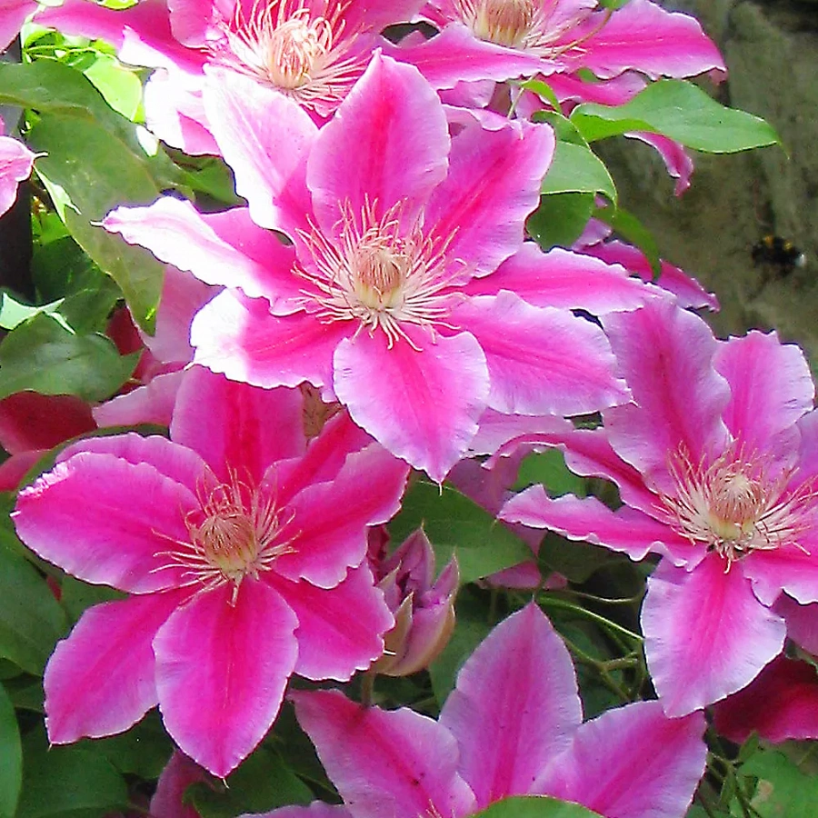 Клематис крупноцветковый Bees Jubilee - это волшебное растение, способное преобразить ваш сад в настоящий рай для глаз. Его стебли достигают высоты до 250 см, а цветки диаметром до 100 см поражают своей красотой. Цветки розового цвета с темной полосой создадут неповторимую атмосферу загадочности и романтики.