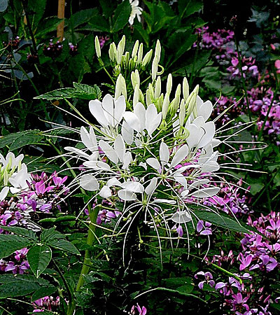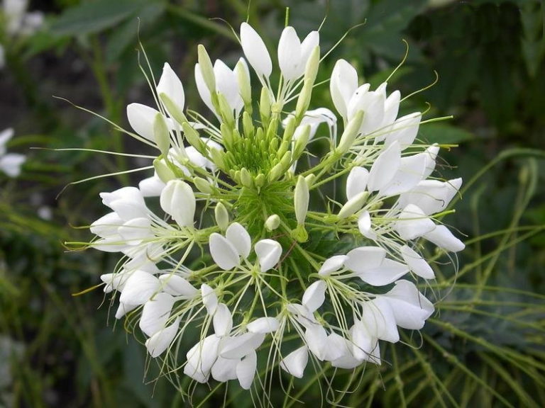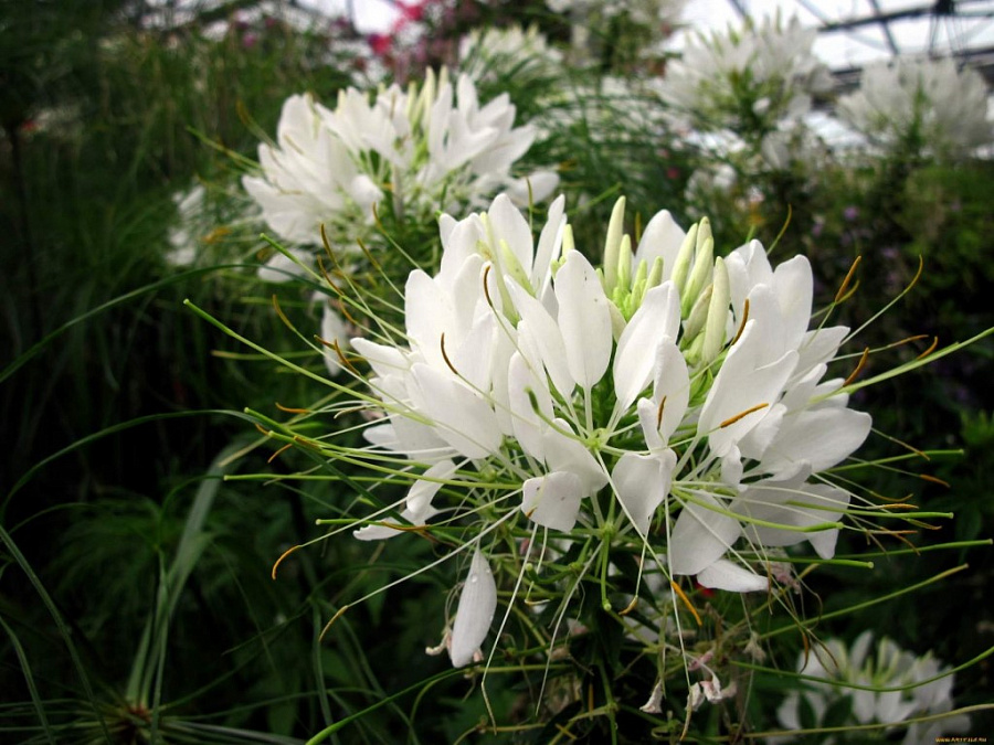 Семена клеомы «Белая Королева» высевают в рассадные горшки в начале марта. Первые всходы появляются спустя одну неделю. На постоянное место рассаду клеомы «Белая Королева» высаживают во второй половине мая. Место для однолетника выбирают солнечное или полузатененное с нейтральной почвой. Период цветения длится с июля по сентябрь. Цветочки обильно усеивают длинные ветви. Лепестки окрашены в белоснежный цвет. Высота стеблей варьируется от 80 до 100 см. Используют сорт семян клеомы «Белая Королева» для создания групповых и одиночных цветников, рабаток.