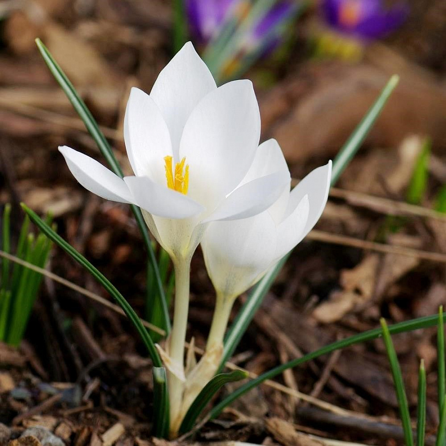 Луковицы крокуса Miss Vain идеально подходят для выращивания в открытом грунте и в контейнерах. Растут на солнце и в полутени, на умеренно плодородных и хорошо дренированных почвах. Глубина посадки луковиц крокуса Miss Vain — 5 см. Период цветения — март — апрель. Цветки бокаловидные, нежного кремово-белого цвета. Состоят из шести лепестков. Листья блестящие, узкие, темно-зеленого цвета, с серебристо-белой полосой посередине. Высота многолетника до 10 см. Он прекрасно смотрится в групповых и смешанных посадках с другими невысокими весенними цветочками.