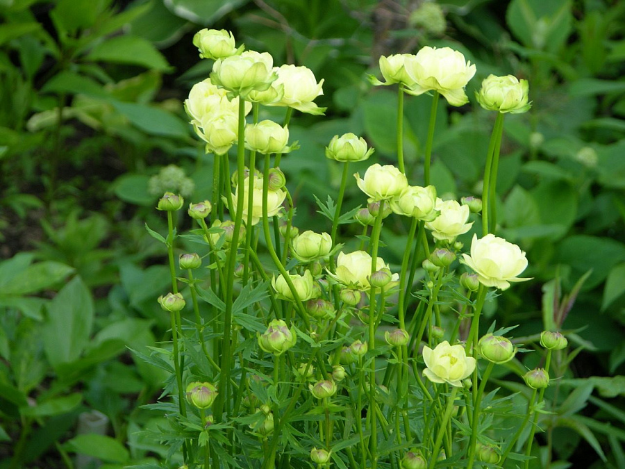 Саженцы купальницы гибридной Чеддар (Trollius hybridus, Cheddar) станут достойным украшением патио и альпинария. Высота взрослого растения не превышает 50 сантиметров. Листва темно-зеленая блестящая, пятиконечная. Куст особенно красив в период цветения. Первые бутоны раскрываются в середине июня. Чашелистики выглядят привлекательно — полумахровые, пастельного кремово-белого оттенка. Многолетник предпочитает освещенные участки, но мирится с полутенью, относится к зимостойким культурам. Для посадки готовят легкие, суглинистые почвы с добавлением гумуса.