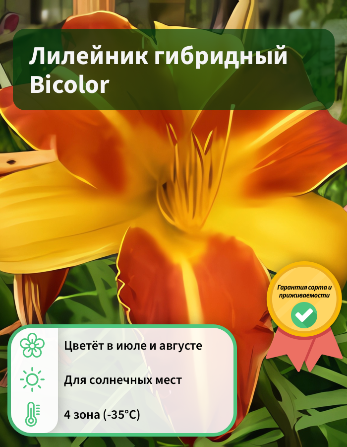 Лилейник гибридный bicolor - это настоящее произведение природы, сочетающее в себе изысканную коричнево-желтую окраску цветков и зеленую листву. Это растение поражает своей красотой и изяществом, привлекая внимание всех вокруг. С его высотой до 60 см и диаметром цветка до 12 см, лилейник станет настоящим украшением вашего сада или огорода. Для того чтобы лилейник радовал вас своим цветением, следует выбирать для него солнечные места и умеренно увлажненные почвы. Растение не требует особого ухода, однако регулярный полив и удобрения помогут ему процветать еще ярче. Лилейник отличается высокой морозостойкостью и устойчивостью к болезням, что делает его идеальным выбором для начинающих садоводов. Приобретите лилейник гибридный bicolor и добавьте неповторимый шарм и изысканность в ваш сад. Позвольте этому растению раскрыть свою красоту и удивить вас своими яркими цветами. Создайте уголок гармонии и красоты с помощью этого удивительного растения!