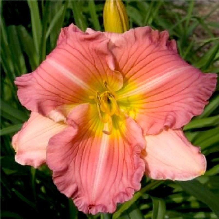 Рассада лилейника Чайна Брайд (China Bride) – многолетнее травянистое растение, вырастающее до 60 см. Обладает двухцветными цветками – их внешние лепестки светло-розового оттенка, а внутренние лепестки – ярко розовые с кремовой центральной полосой. Сердцевина желтая, а по краям цветки гофрированные. Растение начинает цвести уже в июле, и размер цветов достигает диаметра 11 см. Сорт Чайна Брайд хорошо растет на солнечных полянах, а вот в тени ухудшается цветение. Данный сорт будет лучше ощущать себя на хорошо дренированной почве, при умеренном поступлении влаги к корням. Неплохо вырастает на глинистом грунте, но землю вокруг цветка рекомендуется часто разрыхлять. При не морозной зиме рассада может перезимовать без дополнительного укрытия.