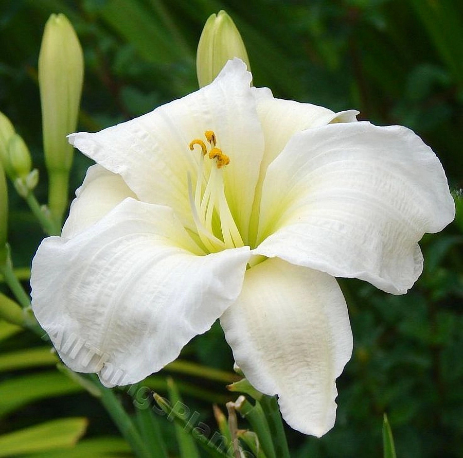 • обильное и продолжительное цветение. Распустившиеся бутоны имеют белоснежные лепестки с немного гофрированным краем и атласным блеском, горлышко при этом нежно-зеленного оттенка. Лилейник Джентл Шеферд прост в уходе, что нисколько не уменьшает красоты этого растения. Взрослый куст имеет обильную листву и множество цветоносов, что создает ароматное цветочное облако.