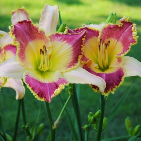 Рассада лилейника гибридного Lotus position пользуется популярностью благодаря простому уходу и потрясающим декоративным качествам. Цветы состоят из крупных сиренево-розовых лепестков, их гофрированные края имеют золотистую окантовку, которая гармонично сочетается с кремово-желтой серединкой. Стебельки с бутонами можно срезать для составления букетов. Чтобы любоваться роскошными кустами с крупными, до 27 сантиметров в диаметре цветами, следует правильно выбрать место для посадки. Оно должно быть хорошо освещено, защищено от ветра. Растение предпочитает свежую дренированную почву.