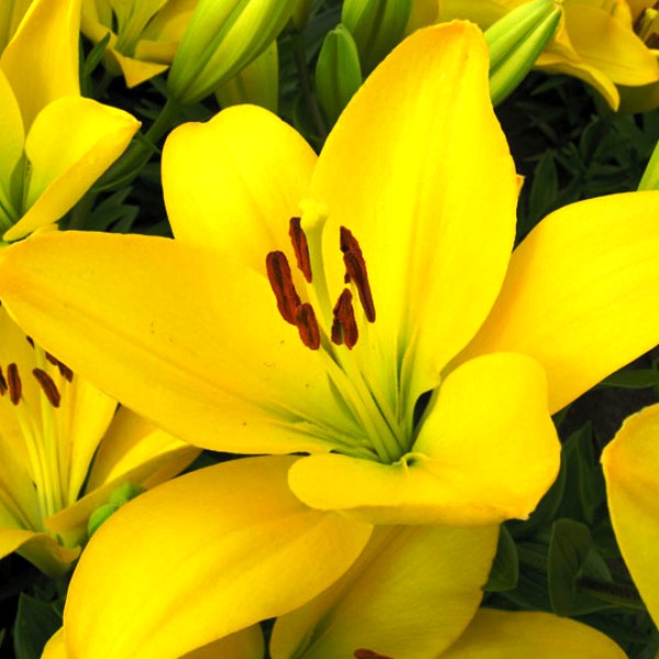 Луковицы Лилии ЛА-гибрид Эль Диво ― посадочный материал, о приобретении которого не пожалеет ни один цветовод. Посадить этот сорт ― значит поселить на своем участке яркие солнышки, сияющие лепестками насыщенно-желтого цвета с темно-коричневыми пыльниками. Цветение приходится на середину июля, и первый распустившийся цветок ― только начало всего великолепия, которое предстоит увидеть. На мощном цветоносе высотой около метра одновременно распускается более 10 бутонов, которые в полностью раскрытом виде в диаметре будут достигать 20 см. Очарование усиливает притягательно сладкий аромат. Этим великолепием вы будете наслаждаться на протяжении трех недель!