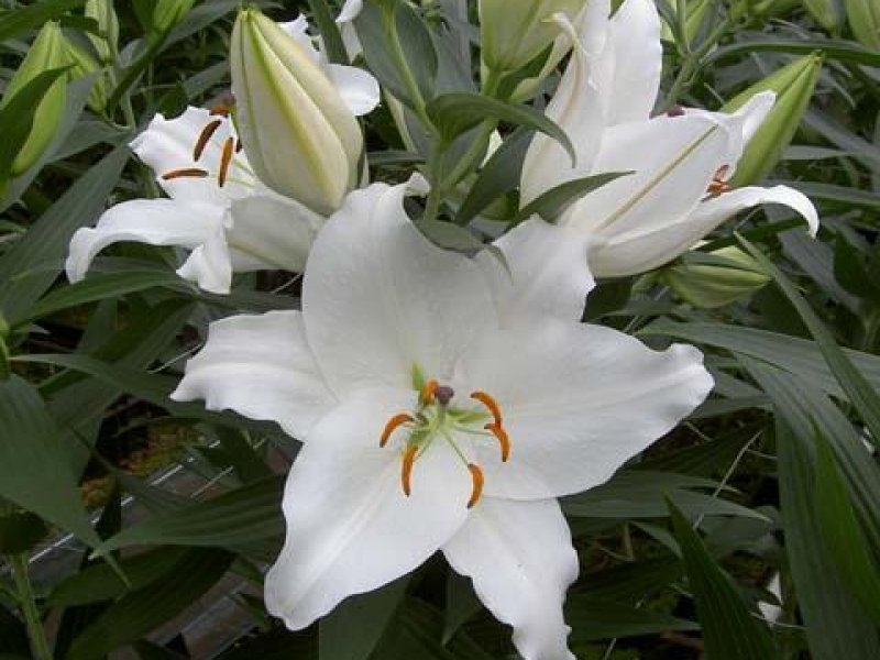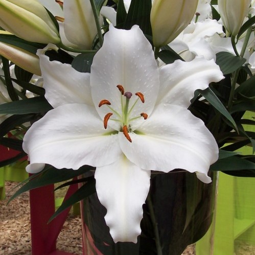 Луковицы лилии восточной Нова Зембла (Lilium hybrid oriental Nova Zembla) — это изысканный цветок для клумб и букетов. Он распускается во второй половине лета, и на высоких цветоносах (до 100 см) одновременно появляется до 8 цветов, до 20 см в диаметре каждый. Их лепестки классического белого цвета, очень легкие и ажурные, у центра присутствует незначительный оттенок зеленого. Лилия Нова Зембла незаменима при создании букетов. Эти цветы могут быть как центральной деталью композиции, так и оттенять другие, слишком яркие расцветки. Уход за этим сортом несложен: растение адаптировано к условиям умеренного климата и без проблем переносит летние и зимние перепады температур в открытом грунте.