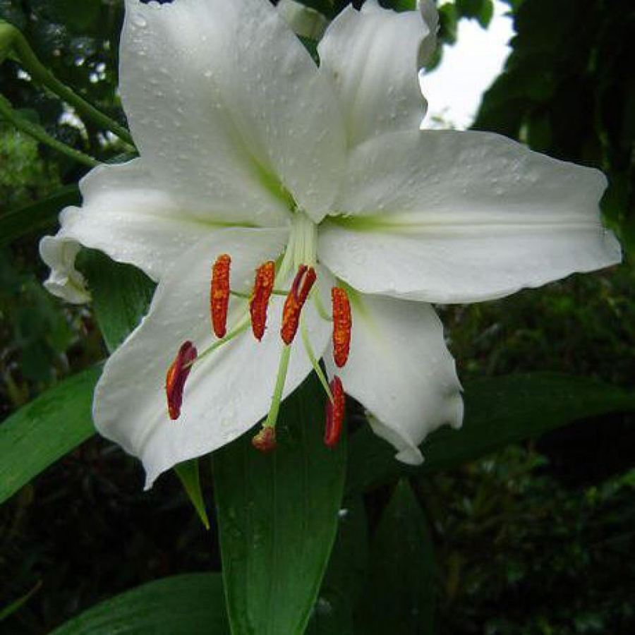 Лилия восточная "Юниверс" - это великолепное растение, которое поразит вас своей красотой и изысканностью. Ее стебель достигает высоты до 110 см, а цветки белого цвета с зеленцой у основания радуют глаз размером до 20 см. Листья лилии имеют форму, напоминающую сердце, что придает растению особый шарм.