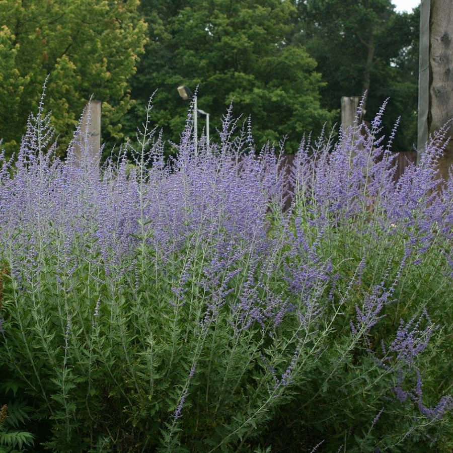 Саженцы перовскии лебедолистной Blue Spire высаживать предпочтительнее на солнечное место. Но растение хорошо выносит легкую полутень. Правда в этом случае оно вытягивается и нуждается в подвязке. Листья серебристо-серые, до 5 см длиной и 2,5 см шириной. От стеблей и листвы исходит острый аромат, если их разломать или растереть. Высота кустарника варьируется от 90 до 150 см. В конце лета и осенью на перовскии лебедолистной Blue Spire появляются соцветия до 30 см длиной, которые состоят из маленьких, трубчатых цветов похожих на лаванду. Цветение продолжается в течение двух или трех месяцев.