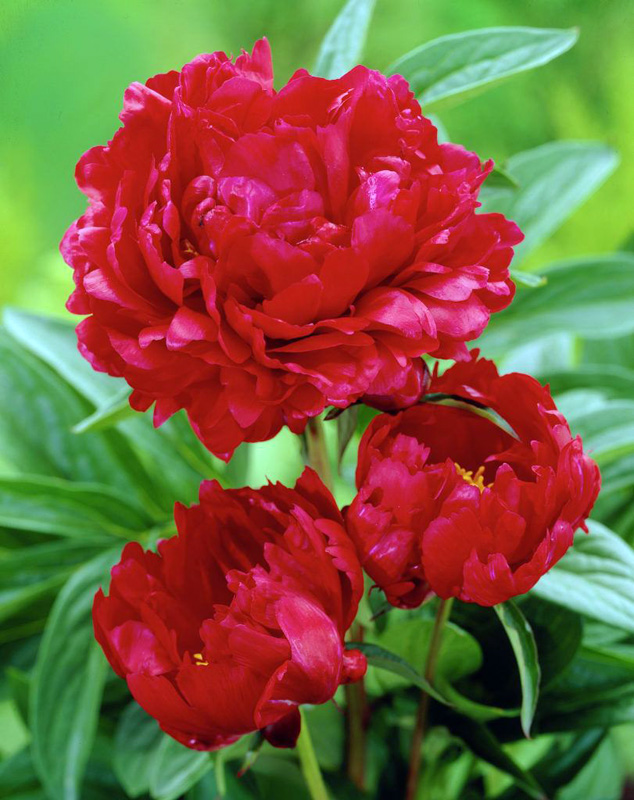 Саженцы пионов Ред Меджик (Red Magic) способны украсить любую клумбу или цветник, сделав сад неотразимым. Ароматный махровый цветок в диаметре 15-17 см напоминает форму шара. Лепестки имеют обширную палитру от красного цвета до вишневого и клюквенного оттенков. На кусте высотой 80-100 см вырастают боковые бутоны. Кустарник пушистый и декоративный. Пион сорта Red Magic относится к среднему сроку цветения, чаще всего зацветает в июне. Сорт саженцев пионов Ред Меджик предпочитает расти в солнечных незатемненных местах.
