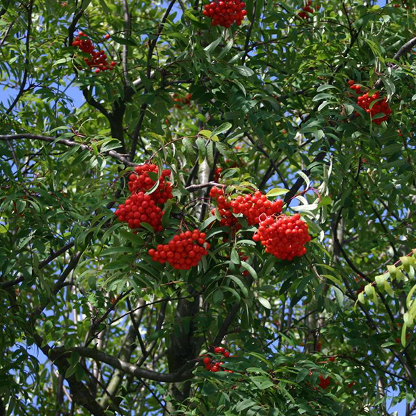Саженцы рябины обыкновенной Эдулис (Edulis) будут украшать сад: весной - цветением, летом – листвой, а осенью – съедобными и красивыми плодами. Высота взрослого дерева достигает 10-15 м. Форма кроны узкая, пирамидальная. Весной крупномер зацветает белыми душистыми венчиками. Осенью крупные зеленые листья начинают приобретать оранжево-красные тона. В начале осени созревают кисти красных кисло-сладких ягод. Рябина обыкновенная Эдулис – любимица садоводов, часто встречается на загородных участках.