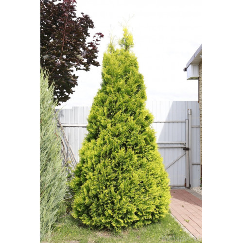 Саженцы туи Голден Брабант (Golden Brabant) хорошо приобретать для озеленения различных видов участков, как в одиночку, так и в группе. Кустарник этот вечнозеленый, имеют хвою зелено-желтого цвета, зеленые шишечки, обладает свойством быстро роста. Достигает высоты 4-5 метров. Туя имеет хорошую морозоустойчивость, стойкая и к засухе. Растение непритязательно к условиям посадки и уходу, но на более плодородных почвах растет лучше.